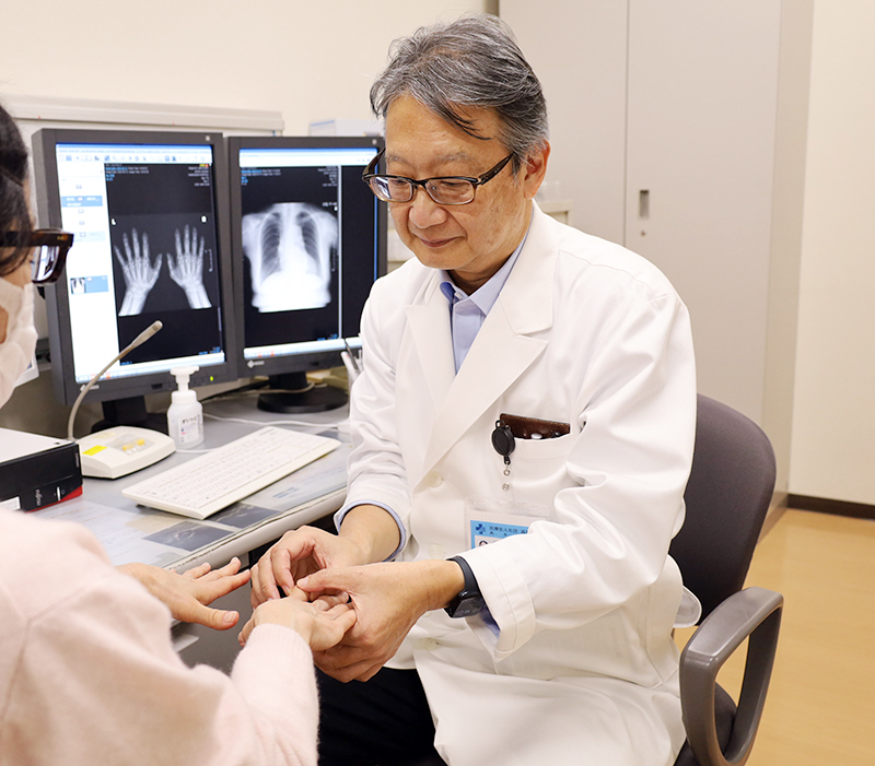 当科では関節リウマチをはじめとする関節疾患と、全身性エリテマトーデスなどの膠原病(全身性自己免疫疾患)を主な対象とし、さらに不明熱などの診療にも当たっています。