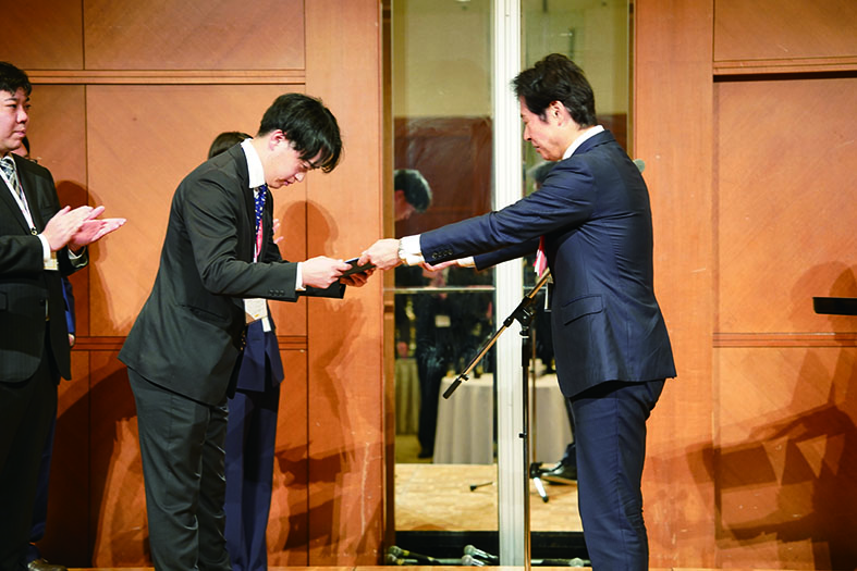 右から、第126回日本消化器病学会九州支部例会 猪股雅史会長(大分大学医学部 消化器・小児外科学講座 教授)、窪田翔太医師、竹内祐樹医師(高木病院消化器内科)