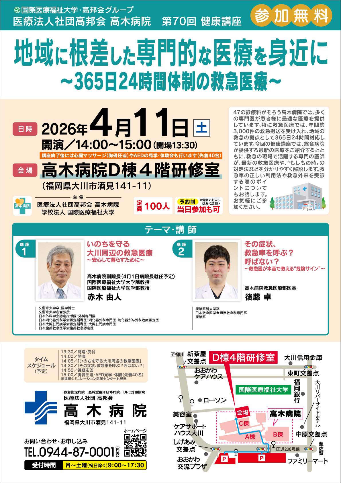 4/11(土)高木病院 第70回健康講座「救急医療」のご案内