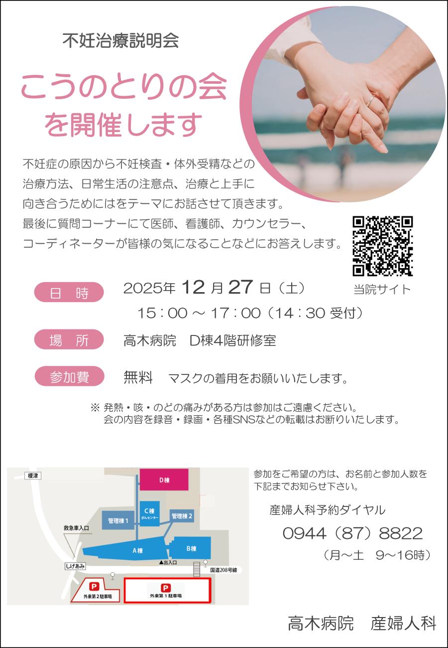 12/27(土)「こうのとりの会(不妊治療説明会)」のご案内