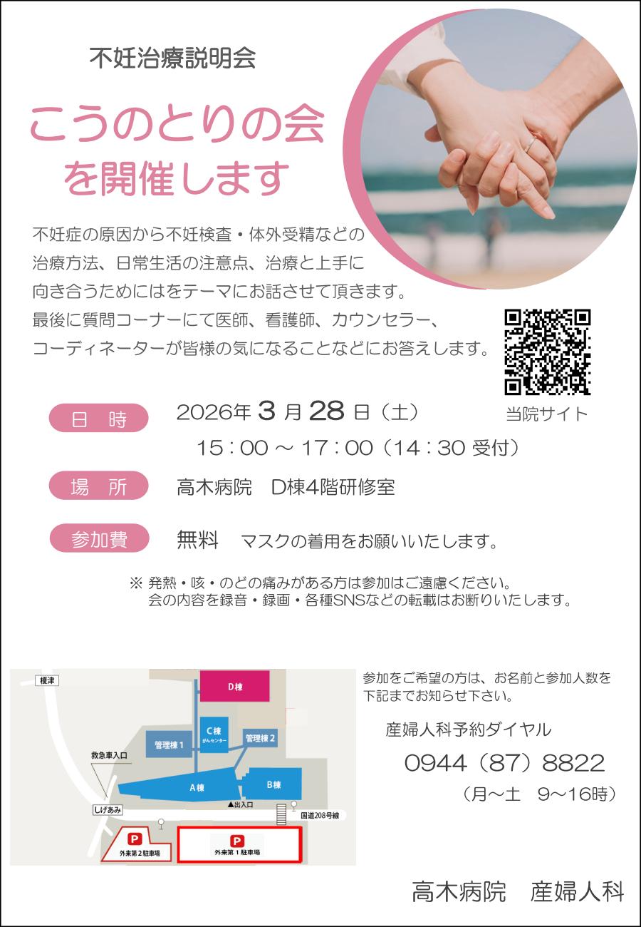 3/28(土)「こうのとりの会(不妊治療説明会)」のご案内